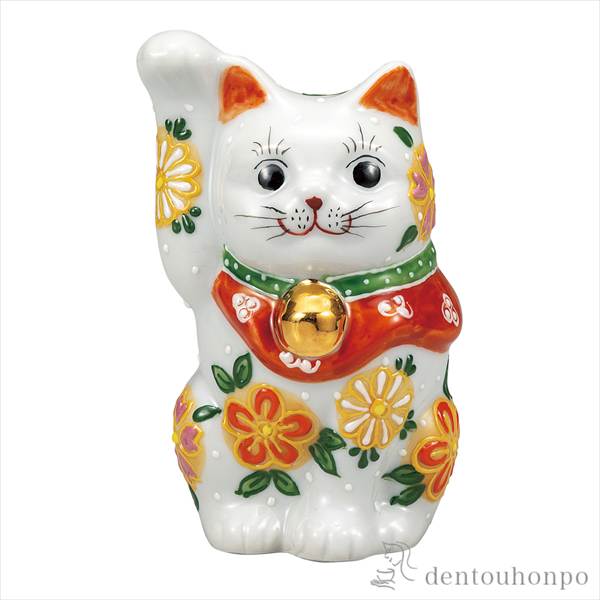 「送料無料」 招き猫 花はな 4号 ( 退職祝い 定年 置物 幸運 開運 まねきねこ 風水 九谷焼 結婚 出産 内祝い 引き出物 )