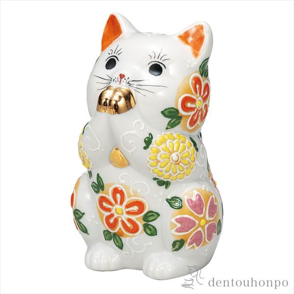 「送料無料」 お祈り猫 花はな 3.8号 ( 退職祝い 定年 置物 幸運 開運 まねきねこ 風水 九谷焼 結婚 出産 内祝い 引き出物 )