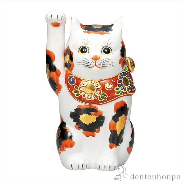 「送料無料」 招き猫 金三毛 6号 ( 退職祝い 定年 置物 幸運 開運 まねきねこ 風水 九谷焼 結婚 出産 内祝い 引き出物 )