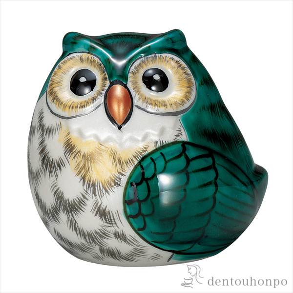 横向きふくろう 緑釉彩 3号 ( 初任給 プレゼント 母の日 置物 幸運 開運 まねきねこ 風水 九谷焼 結婚 出産 内祝い 引き出物 )