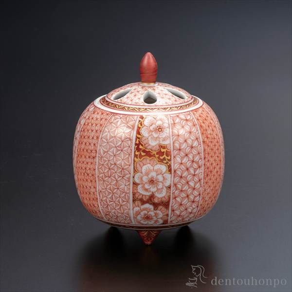「送料無料」 香炉 赤絵細描咲華文 3.5号 ( お香 線香 リラックス 仏具 人気 九谷焼 周年 創立 上場 竣工 上場 竣工 開店 事務所移転 )