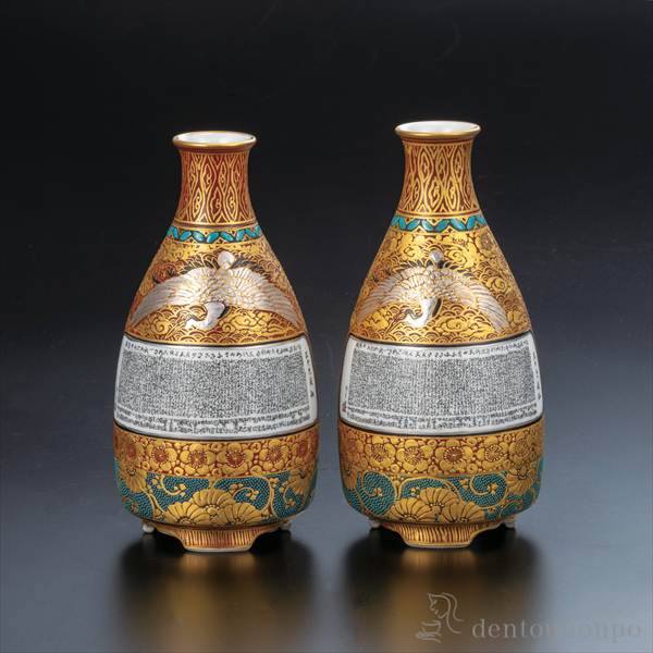 「送料無料」 組徳利 本金盛細字入割取小紋 ( 酒器 日本酒 冷酒 片口 おすすめ 九谷焼 結婚 出産 内祝い 引き出物 )