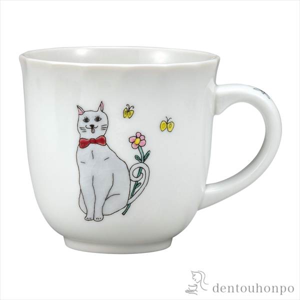 「送料無料」 マグカップ リボンねこ ( 退職祝い 定年 プレゼント デザイン マグ オリジナル タンブラー 九谷焼 結婚 出産 )