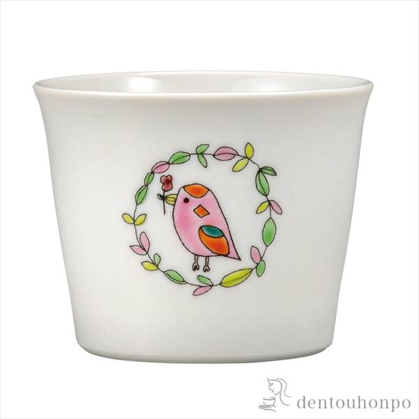 そばちょこ ことり ピンク ( 退職祝い 定年 そばちょこ コップ 蕎麦猪口 冷酒カップ 来客用 九谷焼 結婚 出産 内祝い 引き出物 )