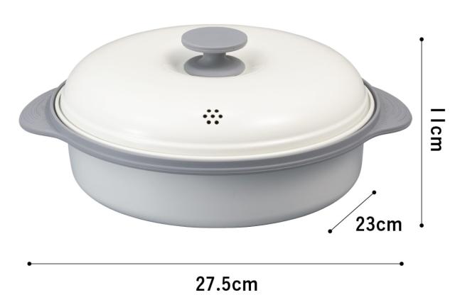 | 材質 | 本体:アルミメッキ鋼板、シリコーンゴム 蒸し皿:シリコーンゴム |