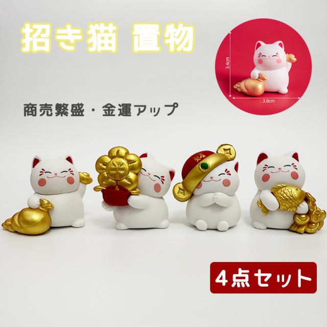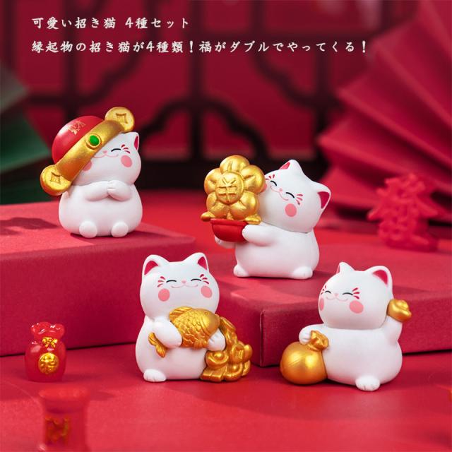 招き猫 置物 置き物 彩絵招き猫 4個セット おしゃれ かわいい 和風 金運/商売/ 置物 ギフト対応 縁起物 【福が4倍】