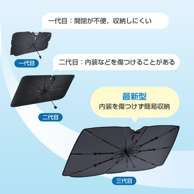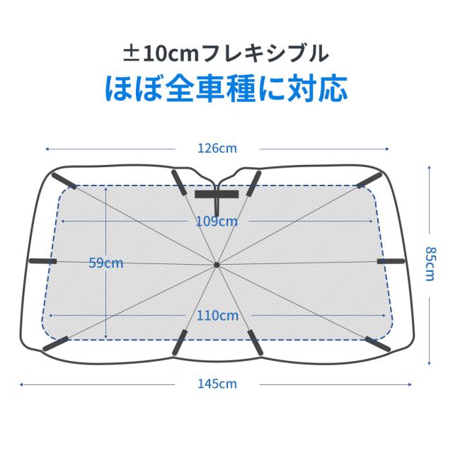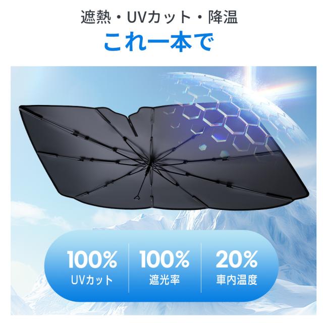 サンシェード 車 フロント【全車種適用 & 360°折れる中棒】日除け 車用サンシェード 傘 折り畳み式 遮光 遮熱 UVカット 収納便利 カーシェード 強化10本骨