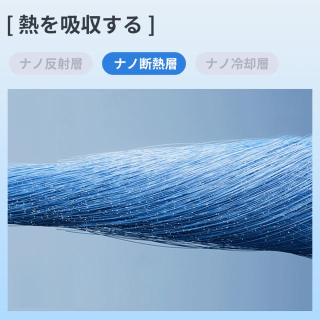 【日焼け対策・遮光率100%】ナノメタルコーティング、ナノ反射層、ナノ断熱層、ナノ冷却層など12層のナノ高分子断熱材で、太陽の熱や紫外線など効果的にカットします。