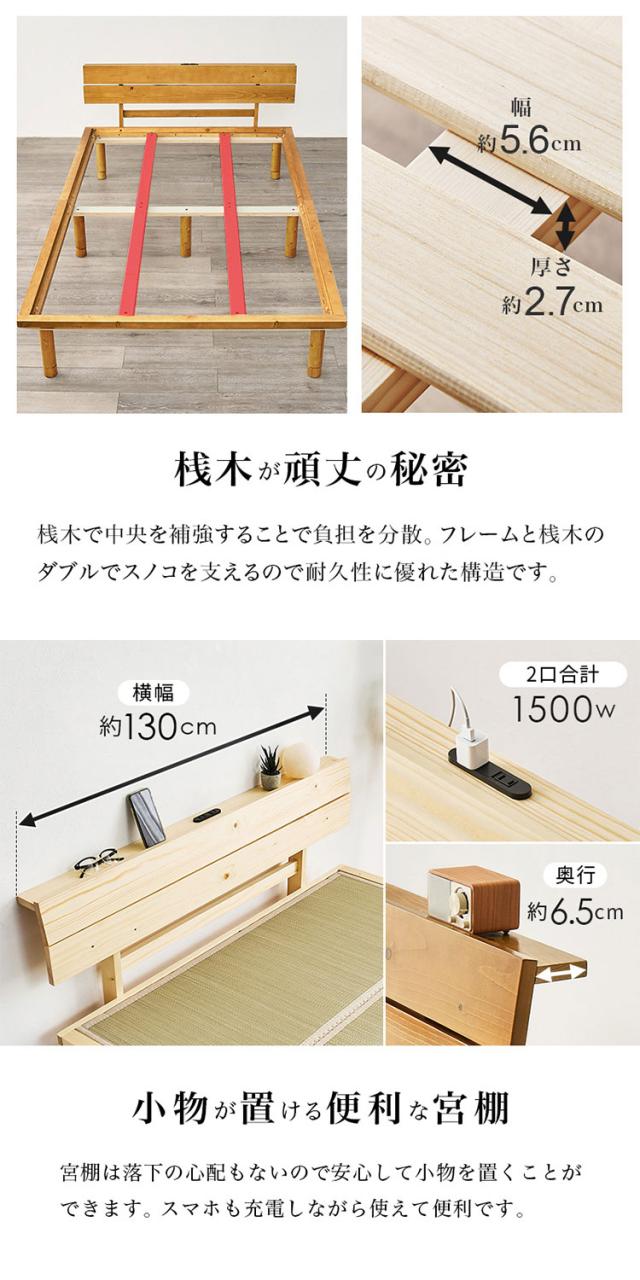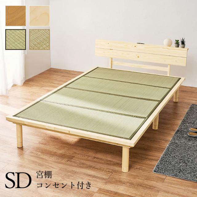 畳ベッド セミダブル 宮棚付き コンセント付き すのこベッド 畳マットレス 頑丈 耐荷重300kg ベッドフレーム 畳マット い草 木製 おしゃれ(代引不可)【送料無料】