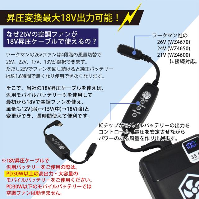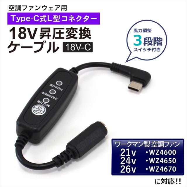 ワークマン対応 18V Type-C昇圧 アダプター 26V 24V 21V L型 2025年 2024年 2023年 空調ウェア PD対応 Type-C モバイルバッテリー WindCore ファン付き作業服 変換 昇圧アダプタ 昇圧ケーブル USB-C端子 タイプC 昇圧コンバータ スイッチ付き 【18V-C】