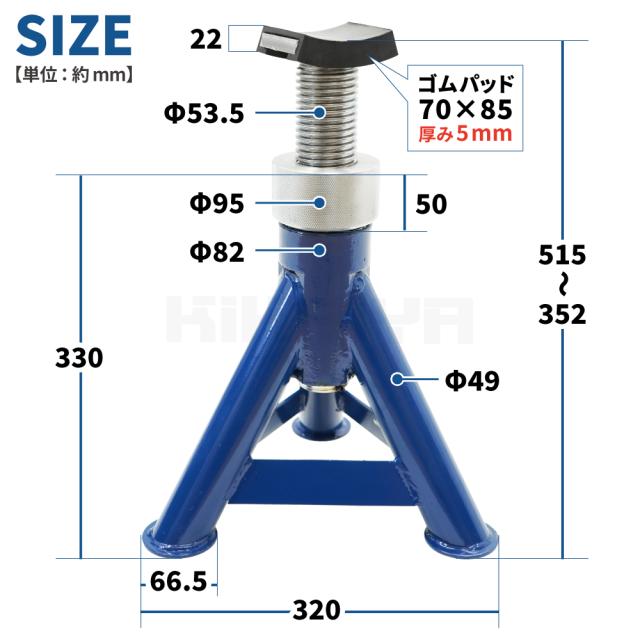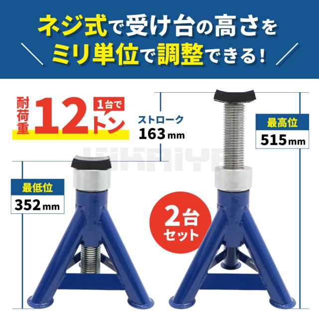 ジャッキスタンド 12t 低床 ネジ式 2台セット 352〜515mm 高耐久 2基 馬ジャッキ リジッドラック ジャッキアップ 整備用 KIKAIYA