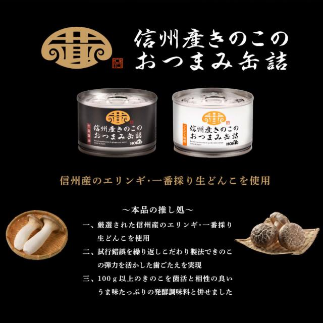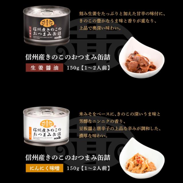 信州産きのこのおつまみ缶詰 4個セット(にんにく味噌2個・生姜醤油2個)