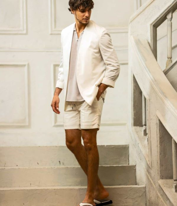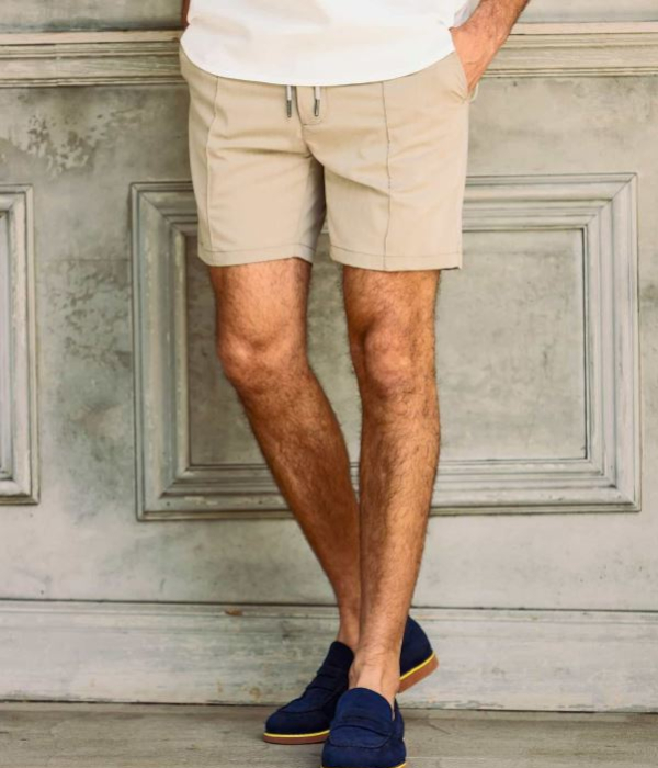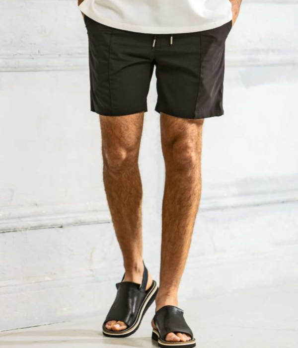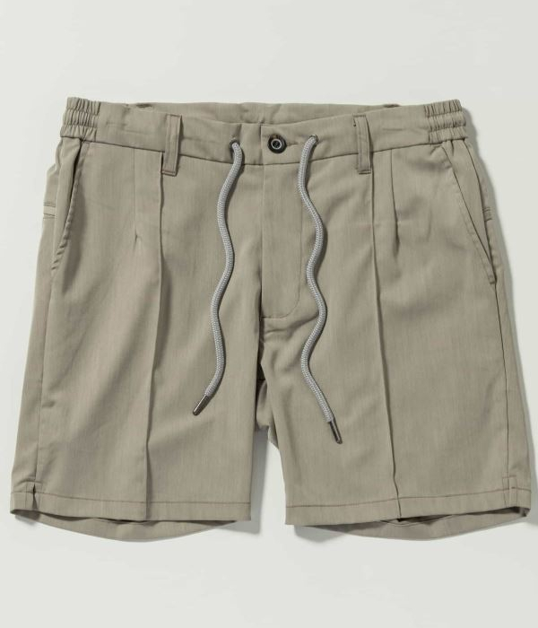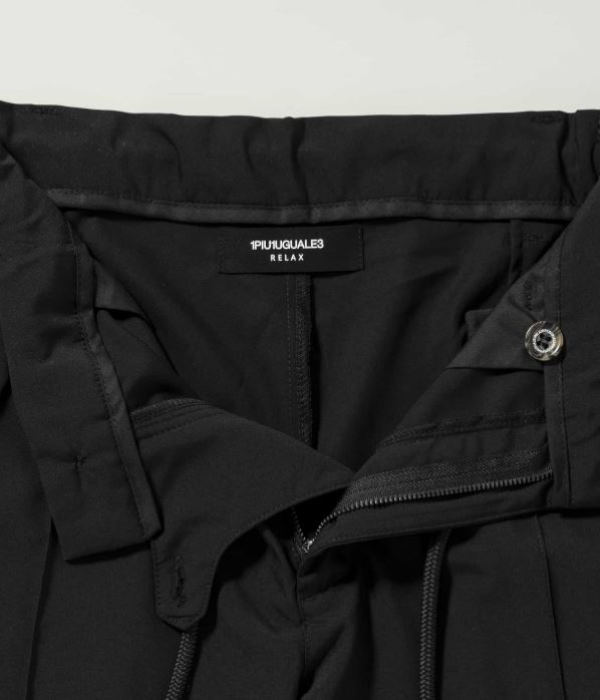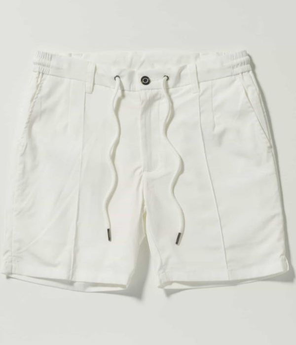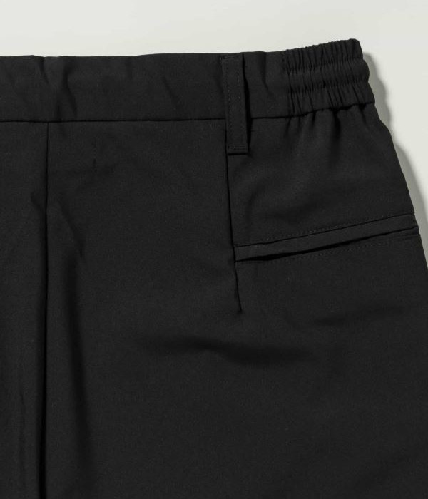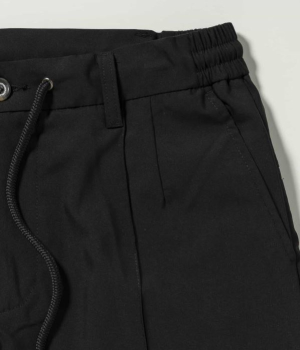 センターにピンタックを施すことでシルエットを引き締め、ラフすぎない大人の仕上がりに。伸縮性に富んだウエストゴム+ドローコード仕様でリラクシングな穿き心地も両立しています。