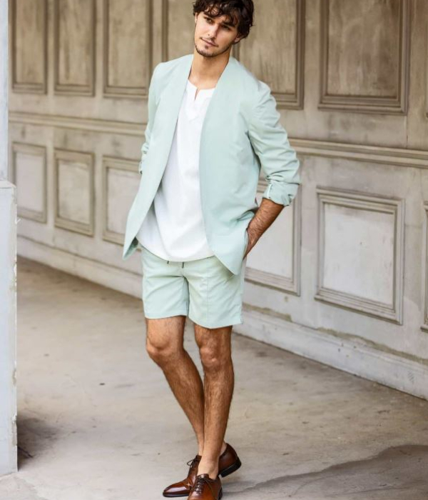同生地のノーカラージャケット(uso-23042)と合わせてセットアップとしても着用できます。