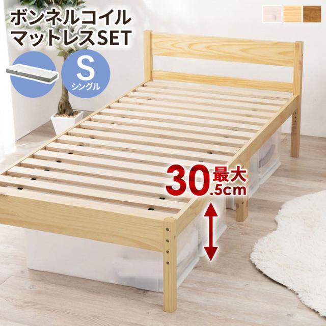 床面高さ調節可能な天然木すのこベッド。安定感のある寝心地のボンネルコイルマットレスセット