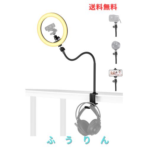 ウェブカメラリングライト クランプスタンド付き 24インチ ウェブカメラアームマウントホルダー 10インチの自撮りライトとヘッドフォンフ