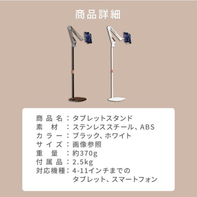 タブレットスタンド 床置き 寝ながら 動画撮影 アルミ アーム アームスタンド スマホスタンド 角度調節 高さ調節 薄型 ipad pro switch 爆買