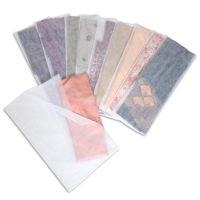 【特長】 ●通気性が良く湿気やにおいのこもりにくい不織布製の着物収納カバー ●紙製のたとう紙より破れにくく丈夫大切な着物をホコリや汚れから守る ●程よく透 ける透 け感で中身が分かるので、探す手間がいらず管理しやすい ●着物をサッと入れることができ、余分な部分は折り返して閉じておける ●扱いやすく使わないときは折りたためるので、場所を取らず保管できる