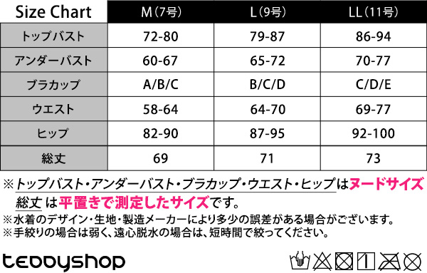 ※トップバスト・アンダーバスト・ブラカップ・ウエスト・ヒップはヌードサイズ、