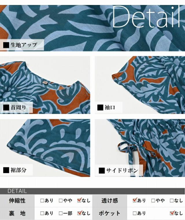 キュっと絞れるドロスト仕様の 大花柄エスニックワンピース。 肌なじみの良いコットン100%素材。 そのままゆったり着るも良し! キュっと絞ってスッキリ魅せることも 可能な優秀アイテムです。 |
