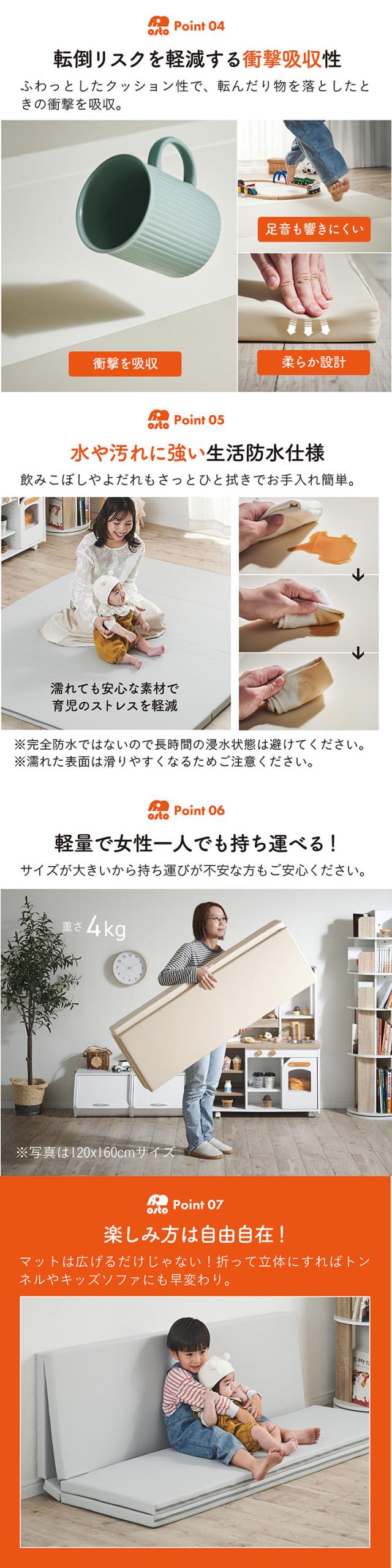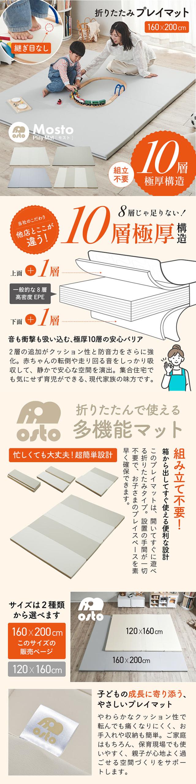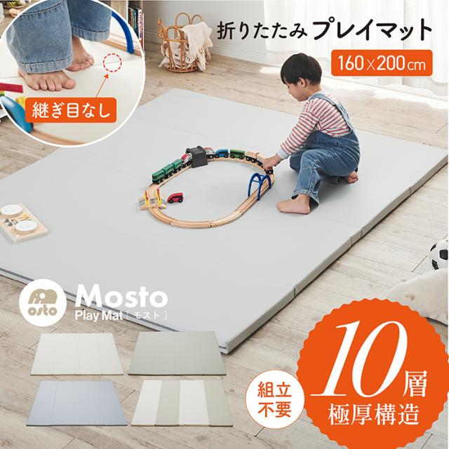 【10層超極厚構造】プレイマット 折りたたみ シームレスタイプ 160x200 Mosto(モスト) 4色対応 赤ちゃん ベビーマット キッズマット 厚み4cm クッションマット おしゃれ 防音マット フロアマット お昼寝マット 子供部屋