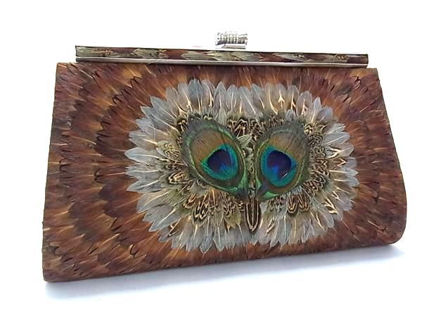 ■極上■本物 ■ クジャク クラッチバッグ セカンドバッグ レディース メンズ ブラウン系 DI1293