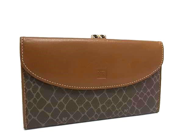 ■美品■ NINA RICCI ニナリッチ PVC×レザー 二つ折り がま口 長財布 ウォレット 札入れ 小銭入れ カード入れ ブラウン系 DI2647