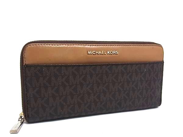 MICHAEL KORS マイケルコース MK柄 PVC×レザー ラウンドファスナー 長財布 ウォレット 札入れ 小銭入れ ブラウン系 DI4754