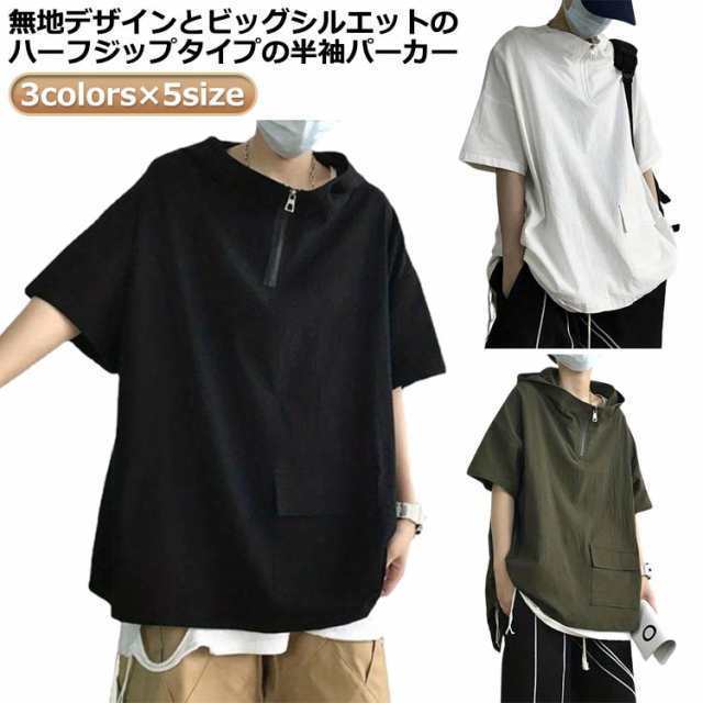 | 3colors×5size 無地デザインとビッグシルエットのハーフジップタイプの半袖パーカー どんなカジュアルな装いにもマッチ フード付きでカジュアルになりすぎず | |
