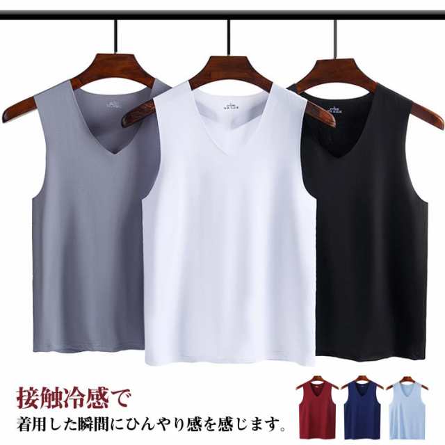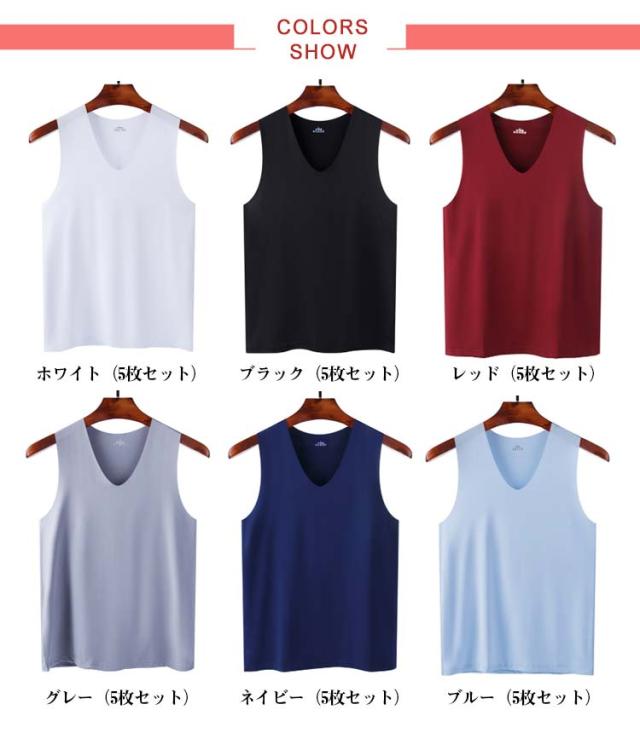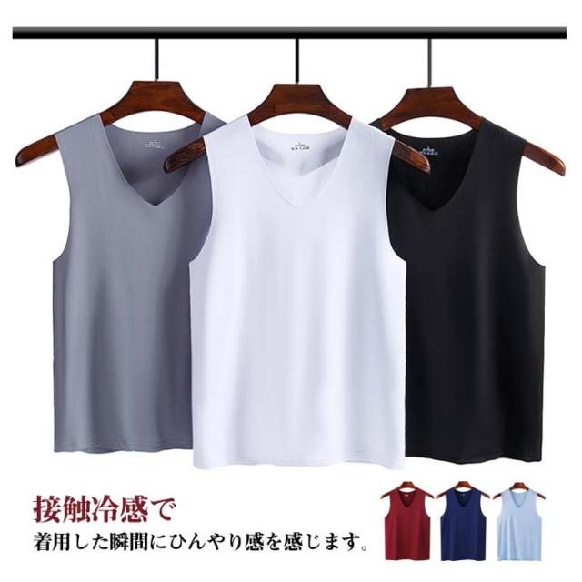 5枚セット!接触冷感 タンクトップ メンズ ンナーシャツ Vネック 肌着 速乾 通気 シームレス トップス ノースリーブ ひんやり 涼しい 吸汗速乾 春夏 夏用 アンダーウエア ビジネス カジュアル レイヤード 重ね着 送料無料