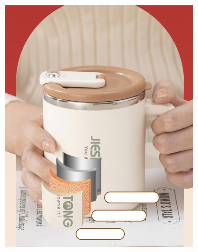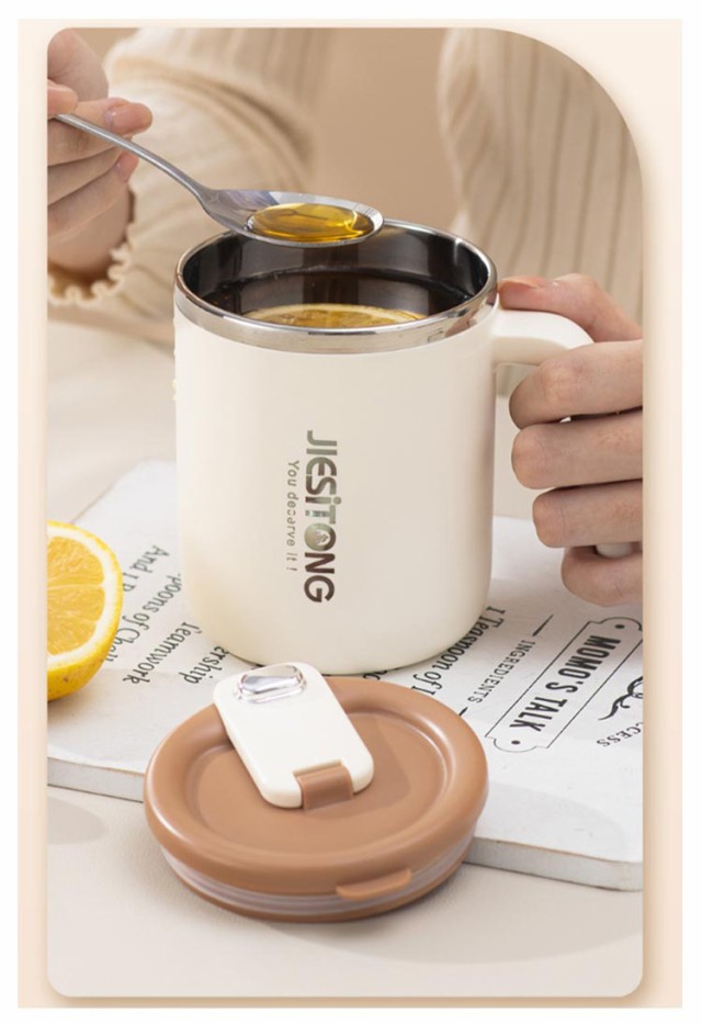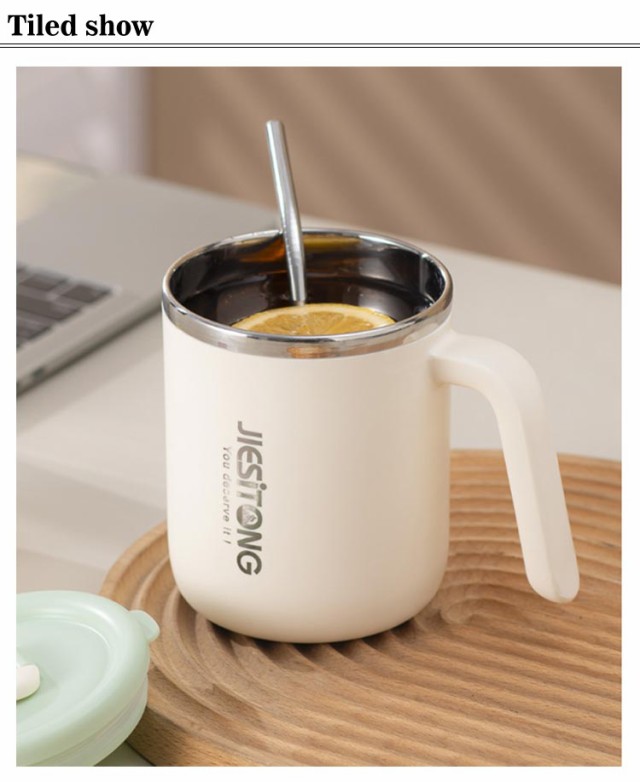 | 蓋つきステンレスマグカップ。 真空断熱構造だから、飲み頃温度をキープ。保温・保冷OK。 結露しにくいので机の上も濡れずに安心。 大きめのハンドル付きなので、しっかりと持つことができます。 フタ付きなので、ホコリや飛沫の侵入を防ぎます。 丈夫なステンレス製なのも魅力的です。 | |