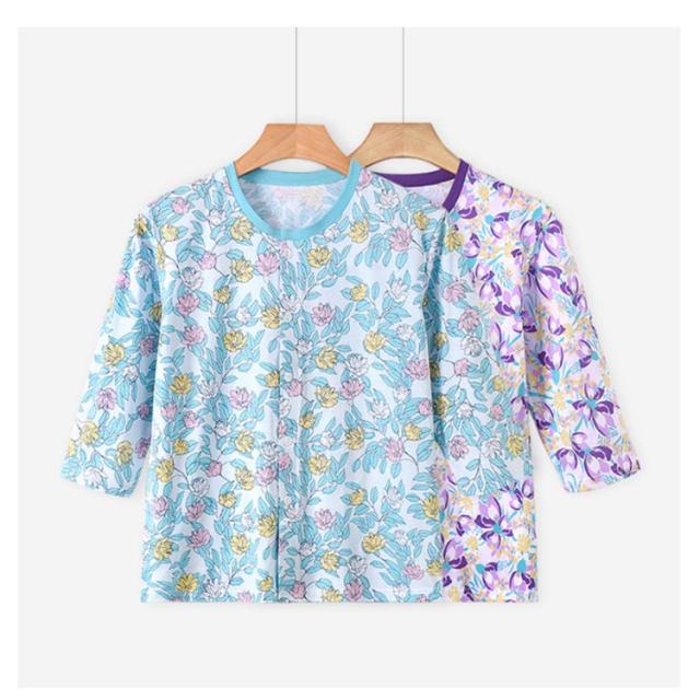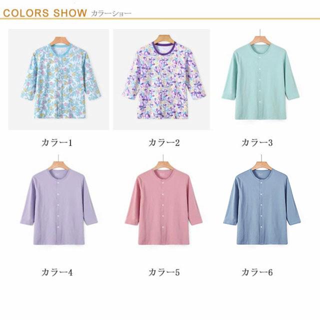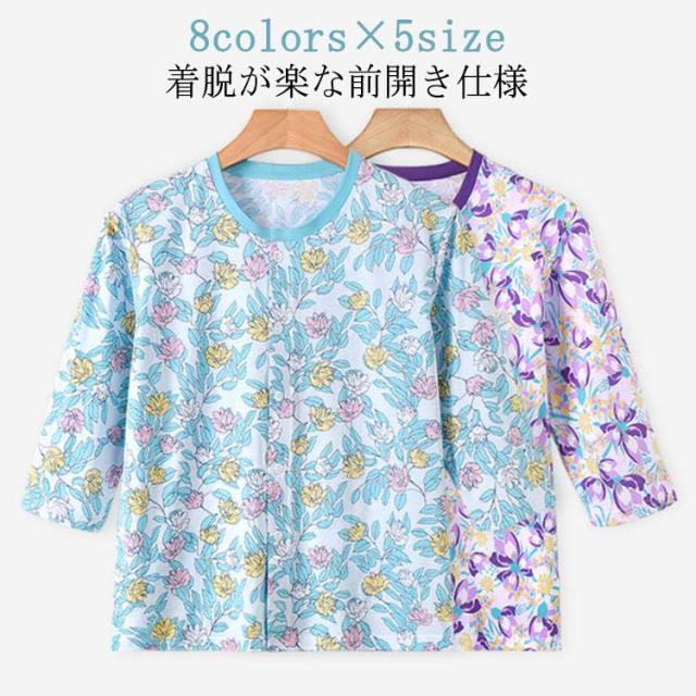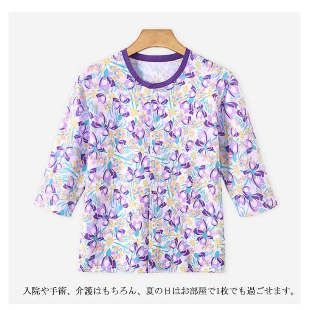 介護パジャマ 七分袖 下着 tシャツ 綿 婦人 コットン 入院 インナーシャツ 前開きシャツ ルームウェア レディース 肌着 前あき肌着 介護用 インナーシャツ 通院 リハビリ 施設 手術 コットン 花柄 前あき コットン 綿