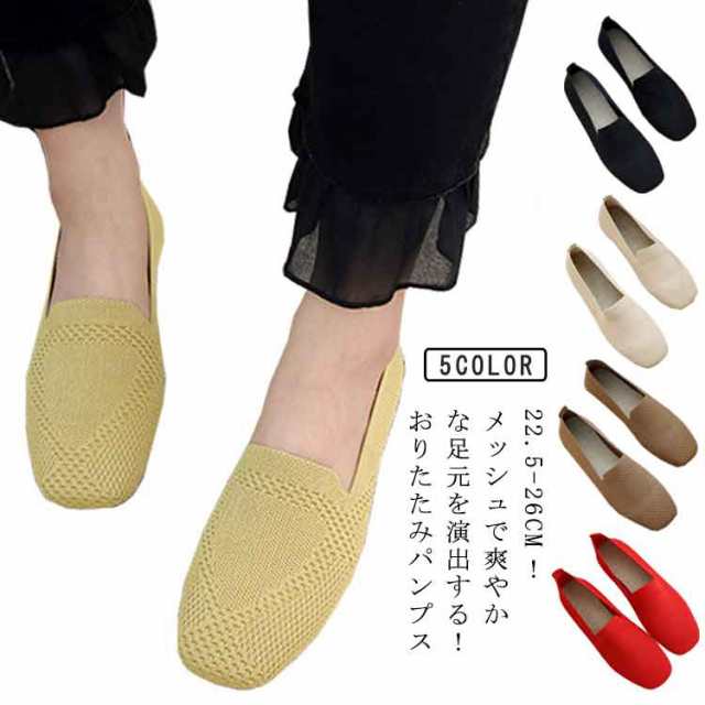 メッシュ パンプス 折りたたみ フラット 痛くない 歩きやすい おしゃれ 通気 春夏 秋 おりたたみパンプス 折り畳みシューズ 携帯スリッパ 美脚 歩きやすい 運転 靴 軽量 ママシューズ 婦人靴 ルームシューズ 送料無料 春 秋 レディース 大きいサイズ