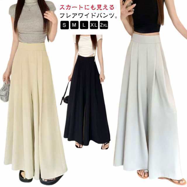 | S-2XL!スカートにも見えるフレアワイドパンツ。 スカートのようなルックスで、リラックス感がありつつ女性らしい上品さも叶います。 裾に向かって広がるAラインのシルエットも魅力的。 カジュアルにはもちろんきれいめにも、様々なシーンにお使いいただけます。 シャツブラウスと合わせてきれいめコーデからTシャツ等と合わせてカジュアルコーデまで、幅広く活用いただける一品◎ | |