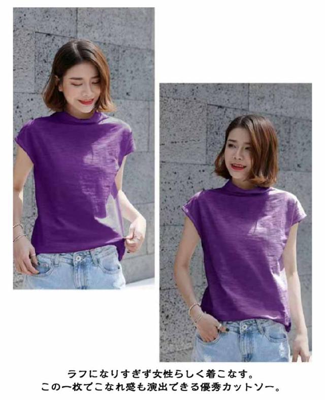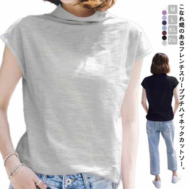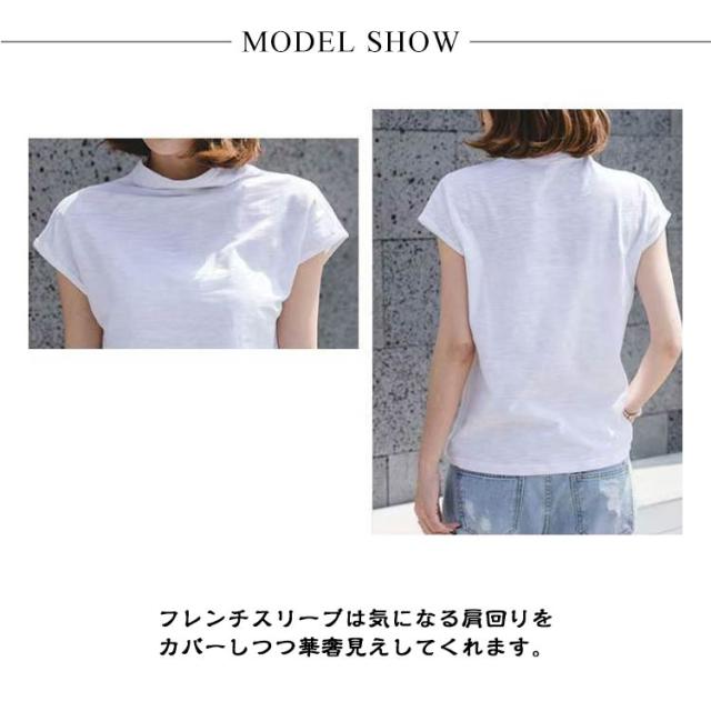 ハイネック ノースリーブ フレンチスリーブ Tシャツ コットン 綿 ボトルネック tシャツ カットソー サマー ハイネック トップス 無地 春夏 二の腕カバー プチハイネック モックネック 20代 30代 40代