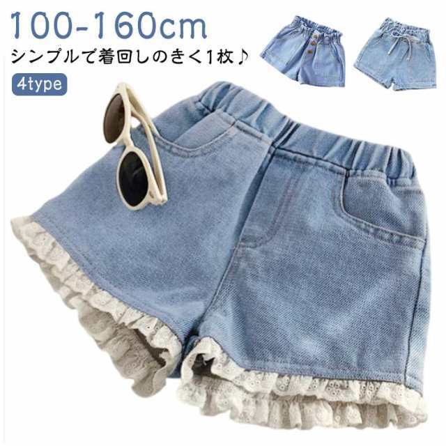 レース デニムパンツ ショートパンツ 短パン ボトムス 子供服 女の子 ジーンズ ハーフパンツ 女児 デニム キッズ ガールズ デニム パンツ 夏 夏服 カジュアル 可愛い ポケット ショートパンツ 100 110 120 130 140 150