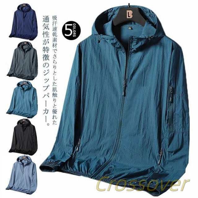 超軽量 日焼け止め服 マウンテンパーカー ジップパーカー ウィンドブレーカー 薄手 防水 接触冷感 吸汗速乾 メンズ