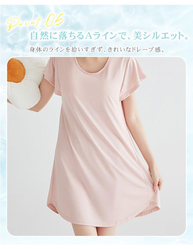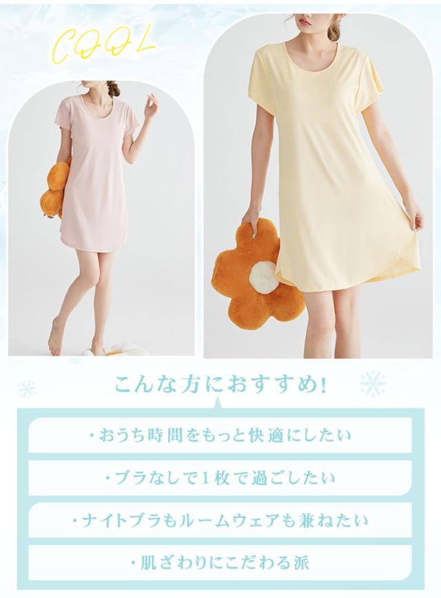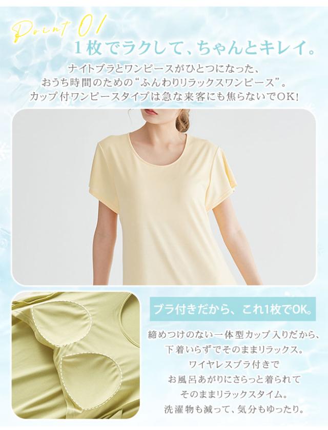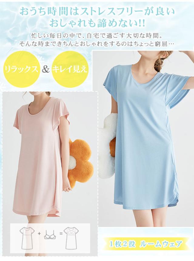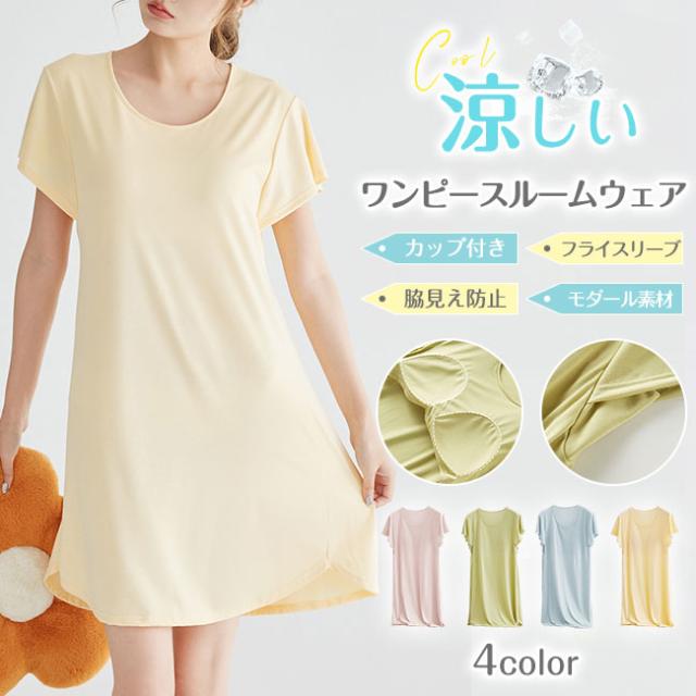 即納 ルームウェア ワンピース カップ付き ナイトブラ一体型 部屋着 ナイトウェア ホームウェア パジャマ レディース フライスリーブ 半袖 モダール 涼しい