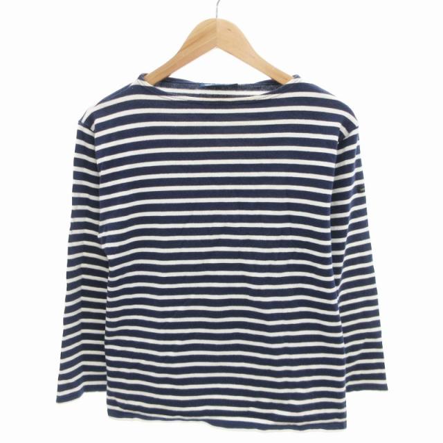【中古】セントジェームス SAINT JAMES バスクシャツ カットソー ボーダー柄 長袖 M 白 紺 ホワイト ネイビー