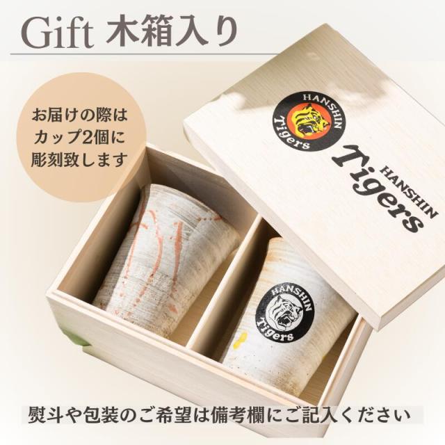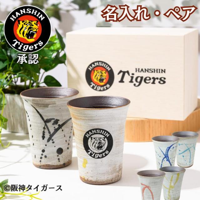 【虎の贅沢二杯】 阪神タイガース グッズ ペアカップ 承認 90周年 名前入り 信楽焼 カップ 湯呑 タンブラー コップ 還暦祝い 誕生日 古希祝 プレゼント ギフト 男性 女性 御祝 人気 コーヒー お茶 お酒 ビール 焼酎 阪神 会社 お父さん おじいちゃん ファン 父 母 木箱印刷