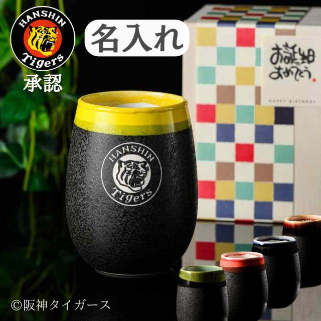 【たっぷりサイズ480ml承認】阪神タイガース グッズ 湯呑み 2025 90周年 名入れ 美濃焼 フリーカップ お父さん 父 義父 大容量 実用的 陶器 焼酎グラス ハイボール 名前入り タンブラー ビール プレゼント ギフト おじいちゃん 還暦祝い 好き 雫 木箱