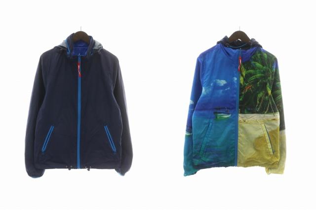 【中古】フリーダムデイ FREEDOMDAY ANTIGUA マウンテンパーカー ナイロン リバーシブル 総柄 フード収納式 S 紺