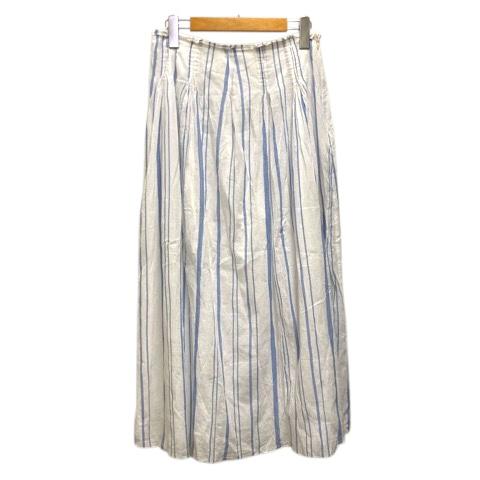 【中古】イネド INED スカート フレア ギャザー コットン ストライプ ロング丈 9 白 ホワイト 青 ブルー レディース