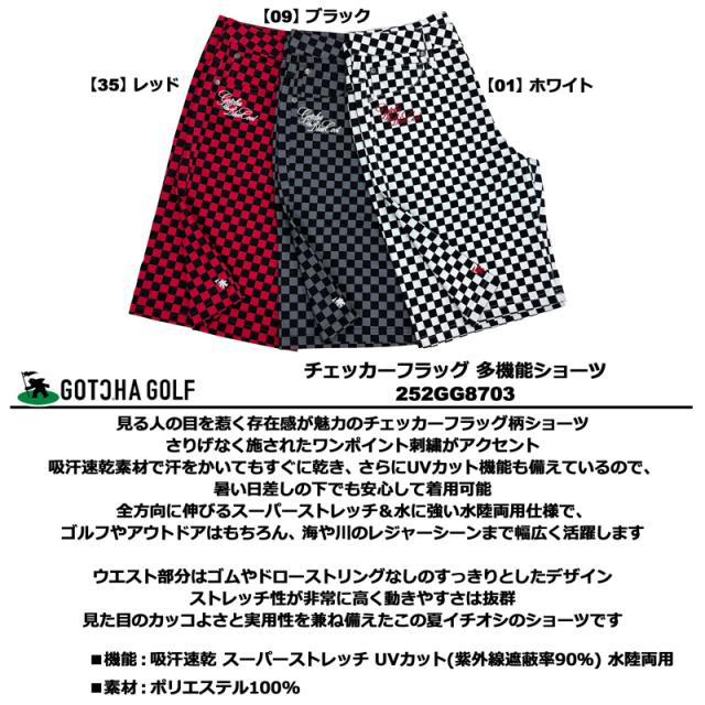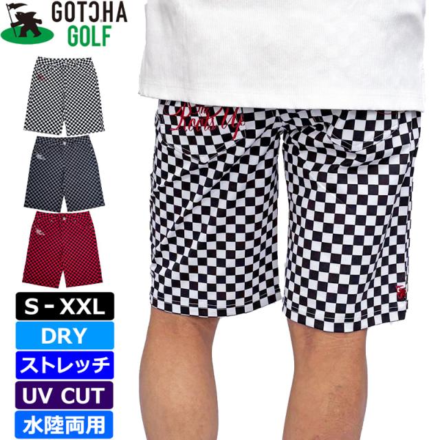 ガッチャゴルフ 2025 メンズ ショートパンツ 吸汗速乾 ストレッチ UVカット 水陸両用 チェッカーフラッグ 252GG1902 GOTCHA GOLF【新品】25SS ショーツ ハーフパンツ ゴルフウェア JUL1