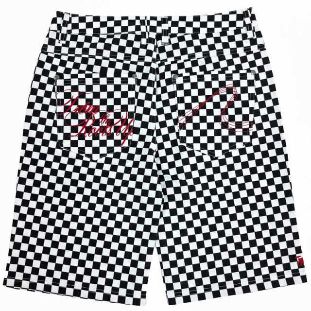 見る人の目を惹く存在感が魅力のチェッカーフラッグ柄ショーツ