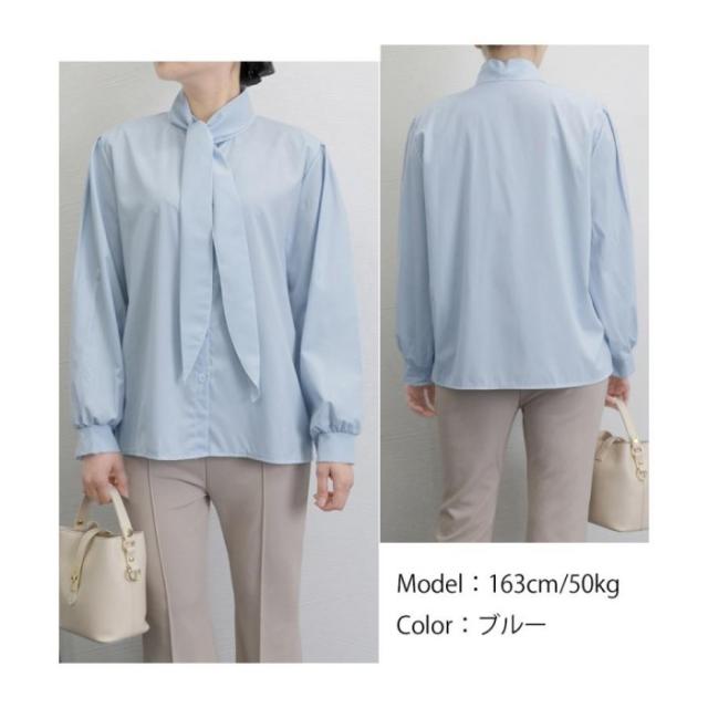 レディース オフィスカジュアルリボントップス 体型カバー立ち襟ブラウス 着やせ 大人女性 おしゃれシャツ 30代40代