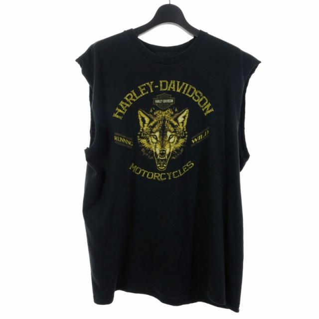 【中古】ハーレーダビッドソン HARLEY DAVIDSON タンクトップ Tシャツ 半袖 ウルフ プリント XL ブラック 黒 メンズ