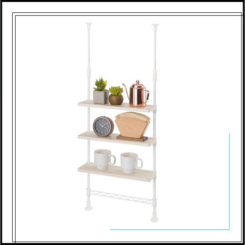 ドウシシャ 3段 突っ張り 調味料ラック スパイスラック 卓上ミニラック 白 ホワイト 幅35x奥行13x高さ75~110cm CM35TP-3WH 木製棚 棚位置
