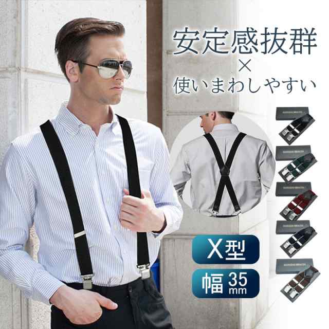 サスペンダー メンズ レディース 35mm 幅広 大きいサイズ X型 おしゃれ カジュアル フォーマル 安定感 調節可能 シンプル