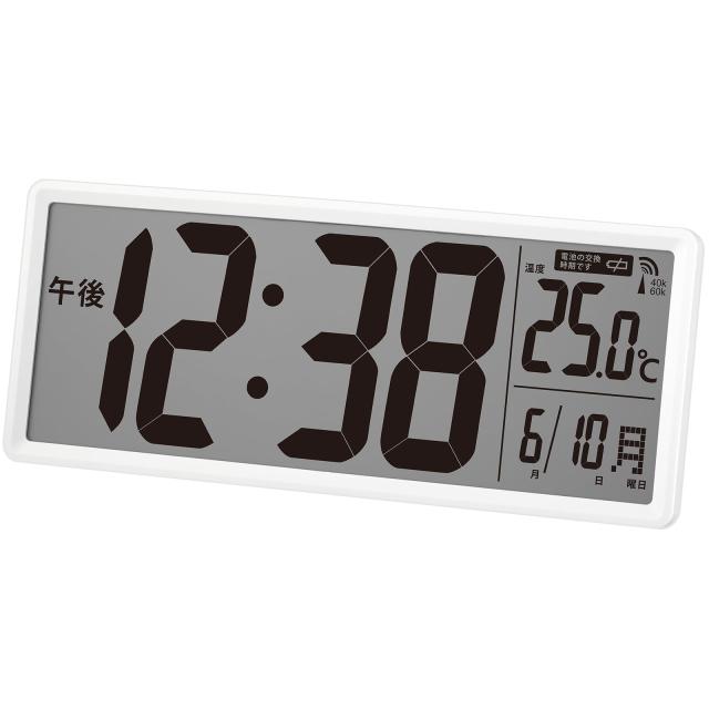 ●共用スペースでも使える大型表示の電波時計 ●時刻を自動修正する電波時計 ●温度、カレンダー、電波受信マーク、電池交換お知らせ表示機能付き ●掛け置き(背面スタンド)兼用で広くご利用いただけます